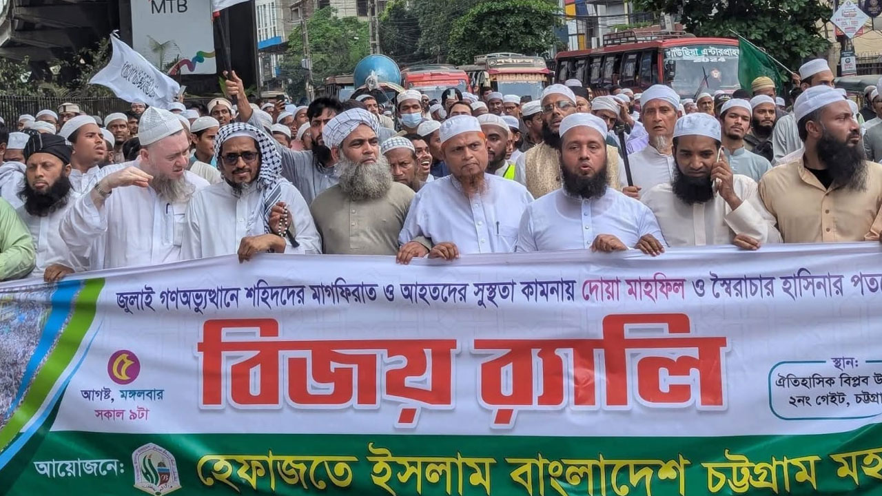 মঙ্গলবার (৫ আগস্ট) চট্টগ্রামের বিপ্লব উদ্যানে এ দোয়া মাহফিল অনুষ্ঠিত হয়। সেখানে গণঅভ্যুত্থানে শহীদদের রুহের মাগফিরাত ও আহতদের দ্রুত সুস্থতা কামনায় দোয়া করা হয়। নগর প্রচার সম্পাদক মাওলানা ইকবাল খলিলের